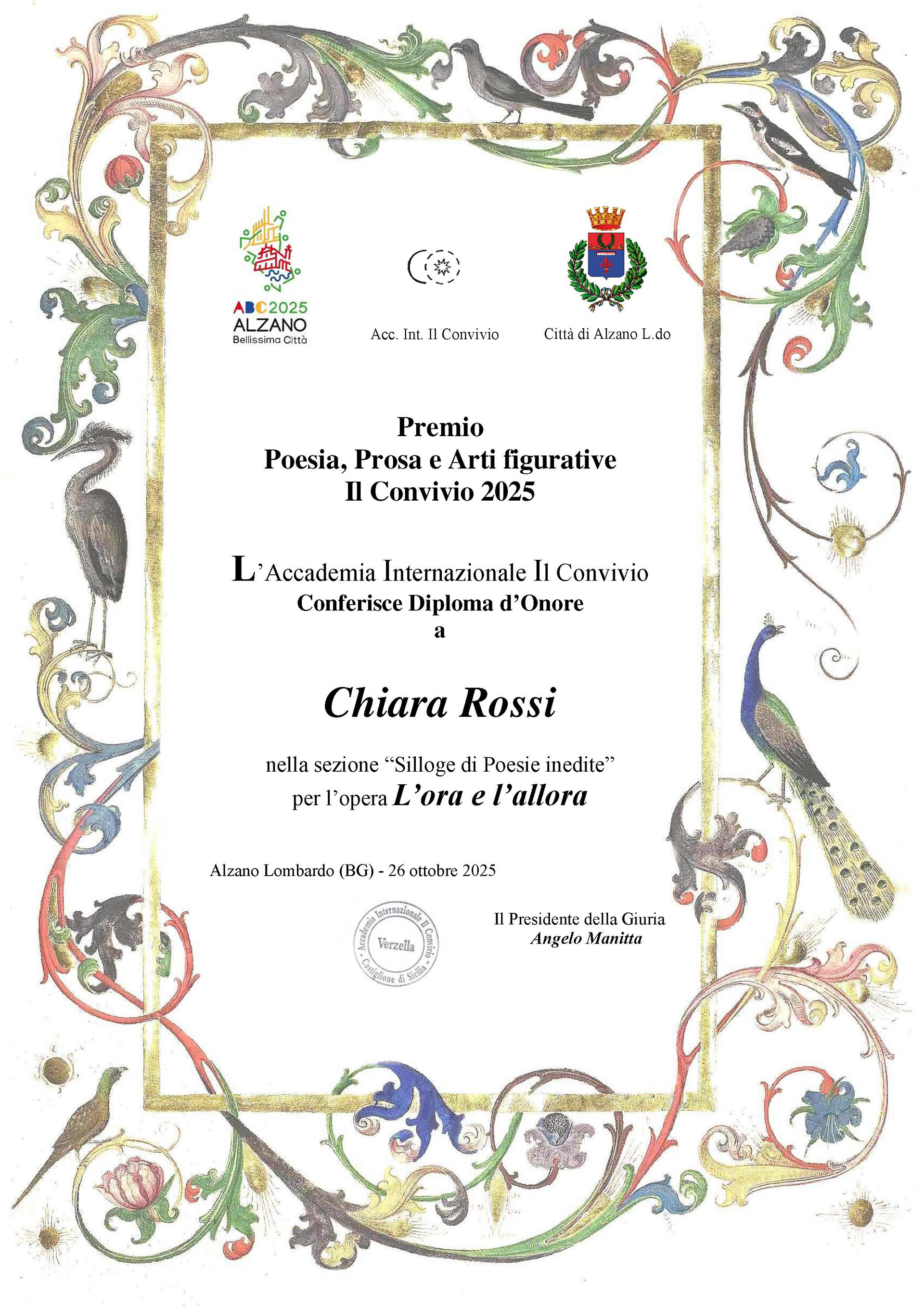[2024]_l'ora & l'allora, silloge di liriche nata dalle mie parole che, pur avendo maggiore propensione a disporsi in forma di testo teatrale, qui hanno scelto di allinearsi in versi (o meglio, non-versi), pur nel mio conscio sconforto di non essere purtroppo un poeta. Le ho lasciate comunque libere di dirsi, perché alcuni inquieti bagliori di me (l’ora) si volevano raccontare, arrischiando, eludendo, dragando i miei immaginifici silenzi, oltre a frammenti rielaborati di storie antiche negli interstizi della potenza ineffabile e misteriosa delle ierofanie e del Mito (l’allora), ai miei occhi imperituro rivelatore di senso letterario ed esistenziale insieme.